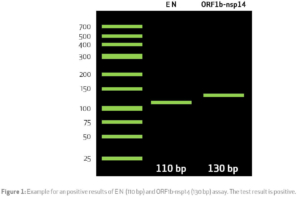 The Cytecs SARS-CoV-2 RT-PCR detects E gene and N gene in a combined assay and ORF1b-nsp14 in a single assay. Test results will be analysed by the means of gel-electrophoresis.